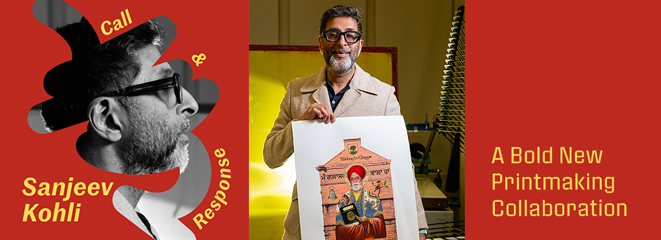 A new limited edition print by Sanjeev Kohli, created in collaboration with Glasgow Print Studio’s Master Printmakers as part of our Call & Response series. Click the banner for more details.